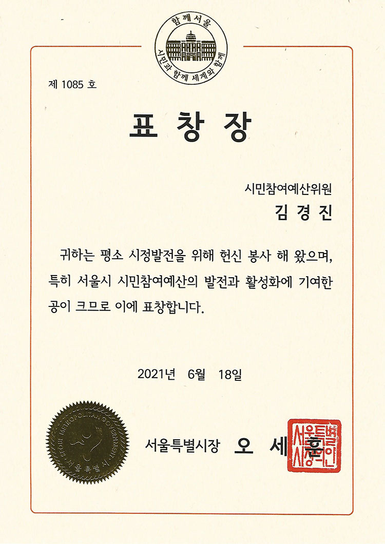서울특별시장표창장